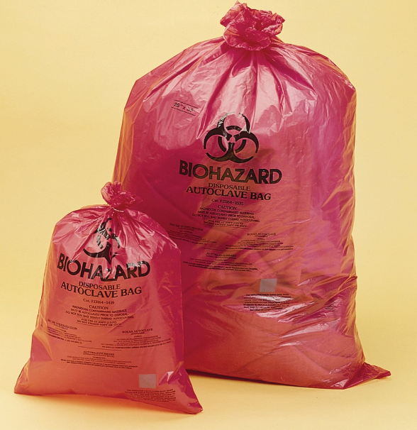 鮮紅色聚丙烯袋包括黑色的生物危害符號(hào)和預(yù)防措施,印刷在四種語(yǔ)言(英語(yǔ),西班牙語(yǔ),法語(yǔ),德語(yǔ)),以增加安全性。高壓蒸汽滅菌后,滅菌貼片變暗,可高壓滅菌至135?C;通過(guò)ASTM 1922抗撕裂性和ASTM 1709抗沖擊試驗(yàn)。