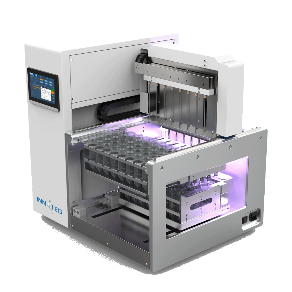 固相萃取(SPE)是色譜分析中最常用的樣品制備方式,需要進行活化、上樣、淋洗、洗脫等操作步驟,洗脫完成后還需要經過濃縮、復溶等步驟,手動操作較為繁瑣。英諾德儀器的全自動固相萃取儀,全自動完成固相萃取過程,可保證實驗過程每個通道同時進行活化、淋洗、干燥、洗脫操作,自動化程度高。采用穩(wěn)固的龍門架結構和配合注射泵及切換閥, 具有更好的平行性和重現性、更少的交叉污染以及更高的回收率的特點,輕松得到高質量和可靠的實驗結果。