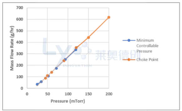 最小可控壓力法更為容易,操作更快捷,使用TDLAS技術,僅用一次實驗即可獲得。此外,在測試受阻點時,盡管腔體壓力和冷阱壓力的比值提示發(fā)生氣流受阻了,但是腔體的壓力仍然處于受控狀態(tài),因此,最小可控壓力的測試方法更為可靠。