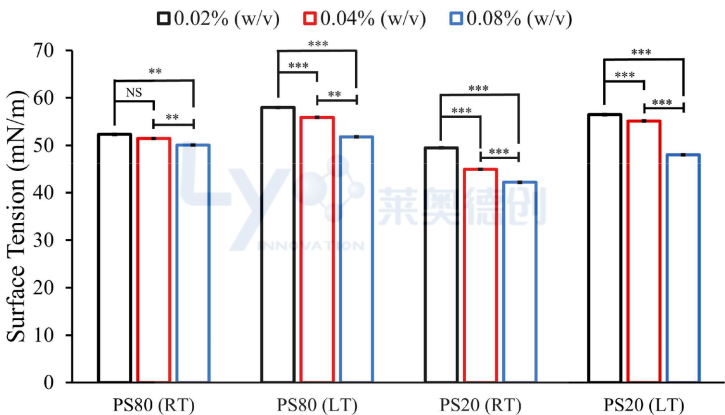 PS20降低表面張力的效果比PS80更強(qiáng);
